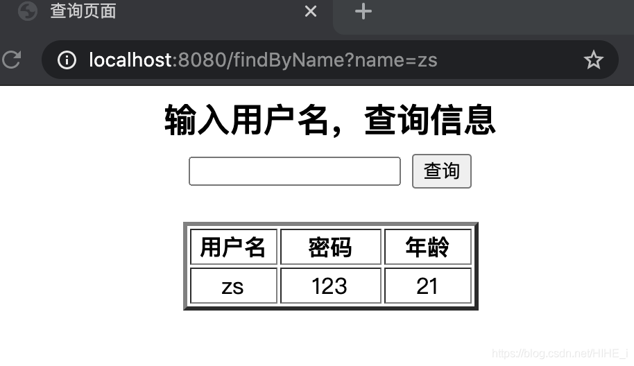 <h2/>输入用户名,查询信息