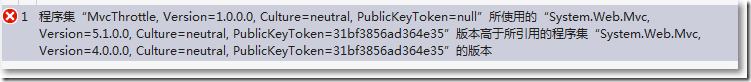 有办法。重新打开MvcThrottle项目的类库,在引用中删除原来的System.Web.Mvc,重新引用本地ASP.NET MVC4版本,重新引用本地的System.Web.Mvc。