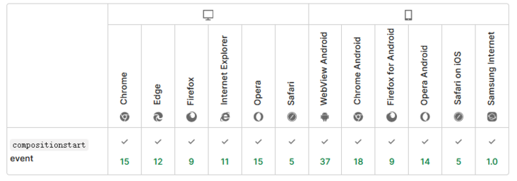 对这种问题的解决方案,需要借助浏览器提供的组合输入事件 。简单地说,输入中日韩文等各种包含“选字”环节的文字的时候,会额外触发两个事件compositionStart和compositionEnd,监听并处理这两个事件,就可以在用户还未完成选字的时候先等待而不触发onInput事件: