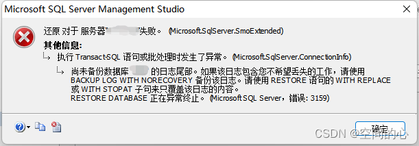 2.System.Data.SqlClient.SqlError: 尚未备份数据库 "xxx" 的日志尾部