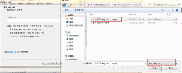 注:在导入证书文件时,文件名右侧文件类型列表中请选择所有文件类型。