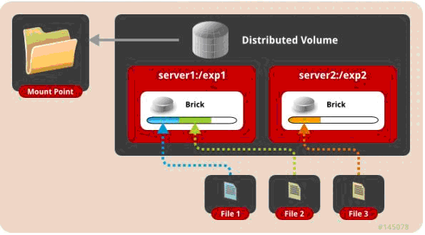 一、 默认模式,既DHT, 也叫 分布卷: 将文件已hash算法随机分布到 一台服务器节点中存储。