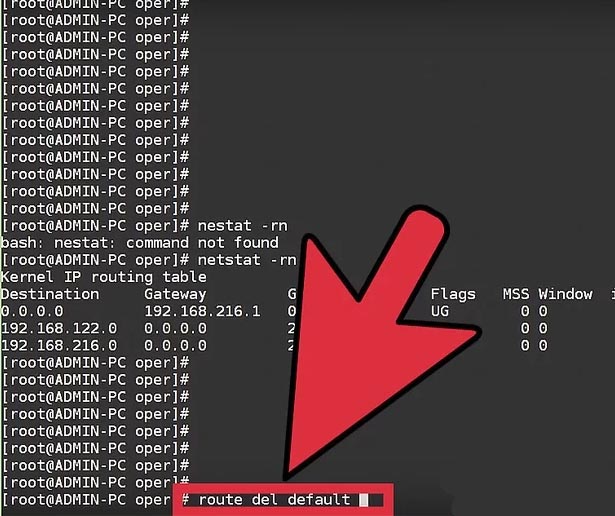3、删除当前的默认网关。如果有多个默认网关,那么会遇到连接冲突的问题。如果你想更改它,请删除现有的默认网关。输入sudo route delete default gw IP Address Adapter。例如,如果想要删除eth0适配器上的默认网关10.0.2.2,请输入sudo route delete default gw 10.0.2.2 eth0。
