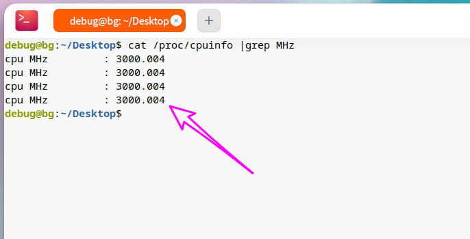 2、输入:cat /proc/cpuinfo |grep MHz,按回车键执行。也可以查询到CPU的主频率。