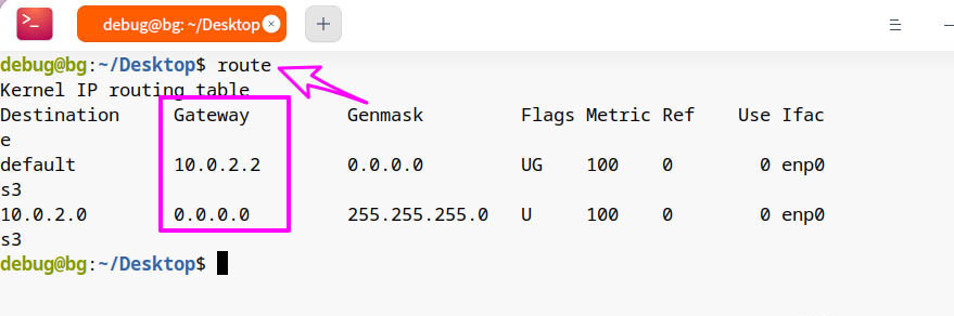 2、输入route,按回车键执行,Gateway一栏即为网关。
