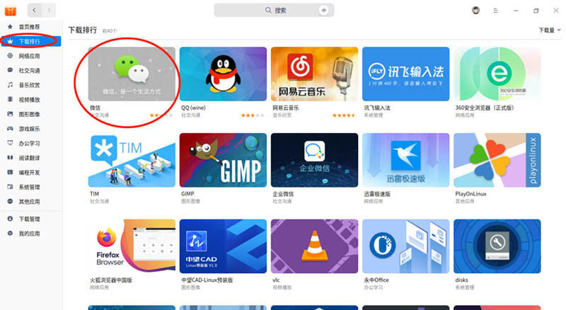 2、在下载排行中找到微信,点击微信(如果在下载排行中,未找到,可以直接在搜索栏中直接搜索微信)