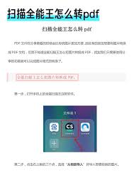 通过扫描全能王,我们能够轻松地将图片转换为pdf格式,为文档管理和信息共享带来极大的便利。无论是处理工作中的合同文件,还是整理学习中的资料,它都能成为我们得力的助手,让繁琐的文件转换工作变得轻松愉快。