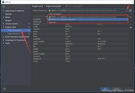 在“python interpreter”设置页面,你可以看到当前项目所使用的编译器。若要更换编译器,点击右上角的齿轮图标,选择“add...”。