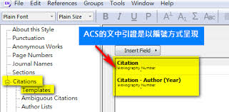 - templates:此选项卡包含了各种引用模板,你可以根据需要进行修改。例如,调整正文中引用文献的格式,使其符合acs规范。