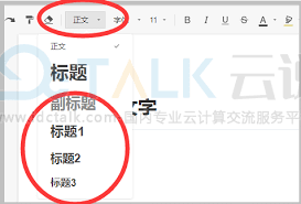 1. 设置样式:在石墨文档中,先将各级设置为不同的样式。比如,将一级设置为“ 1”样式,二级设置为“ 2”样式,以此类推。选中文本后,在文档编辑界面的样式栏中选择相应的样式。