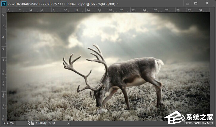 1、打开PS软件,拖入需要进行处理的图片打开,如下图,我们可以看到“鹿”的部分位置都是较为模糊。