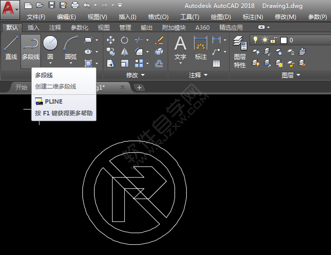 第5步、再使用多段线,绘制一个向右的箭头出来,效果如下: