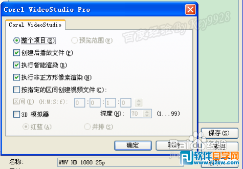 5、在弹出的设置对话框中按需要设置即可,完成后点击“确定”按钮即可,然后在返回的“创建视频文件”对话框中单击“保存”按钮: