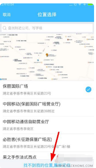 3、点击找不到我的位置,重新定位,你就可以在地图上选择地址,或者就选择拍照签到;